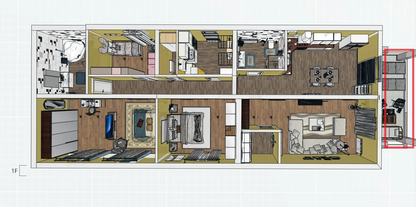 A terasz területe 18 négyzetméter, és tetszés szerint berendezhető. Itt könnyen elfér egy étkezőasztal, egy kényelmes kanapé. És ha szükséges, napozóágyak a napozáshoz.