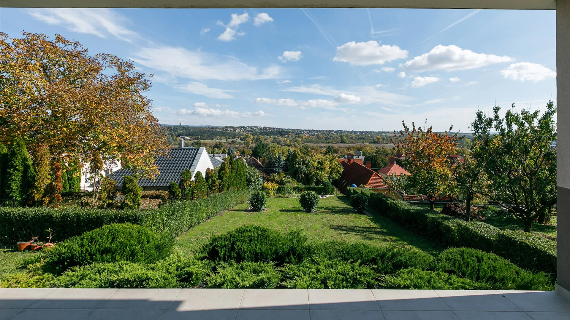 A tágas elrendezés friss levegőre és napfényre hív, így minden pillanat a szabadban frissítő. különböző évszakokban készült fotók. A teraszról nyíló kilátás gyönyörű tavasszal, amikor a gyümölcsfák virágoznak. És ősszel is megvan a maga varázsa. Mint ezen a 2025 szeptemberében készült fotón. Amikor a fák kezdenek sárgulni.